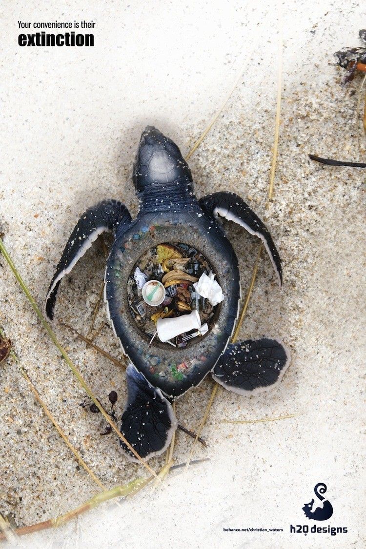 Martwy żółw leżący na plaży. W jego brzuchu znajdują się drobne plastikowe śmieci