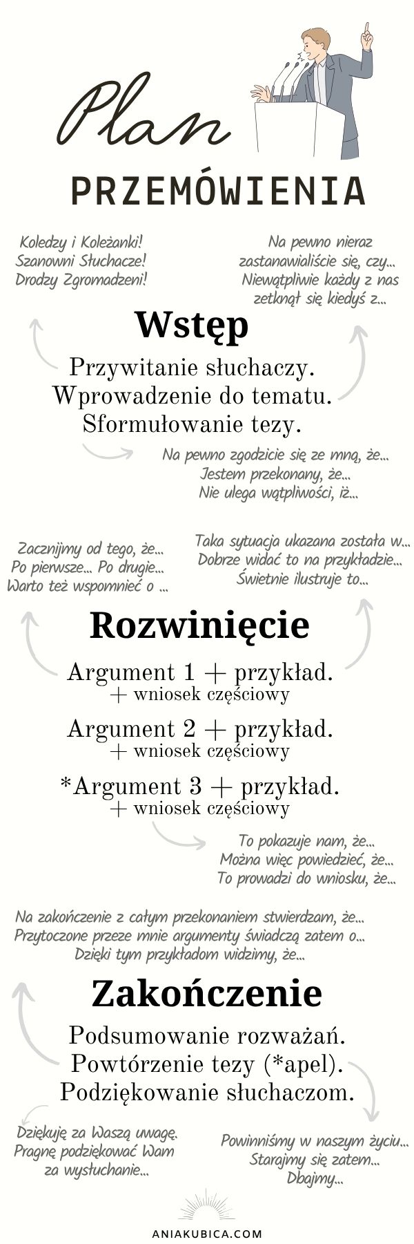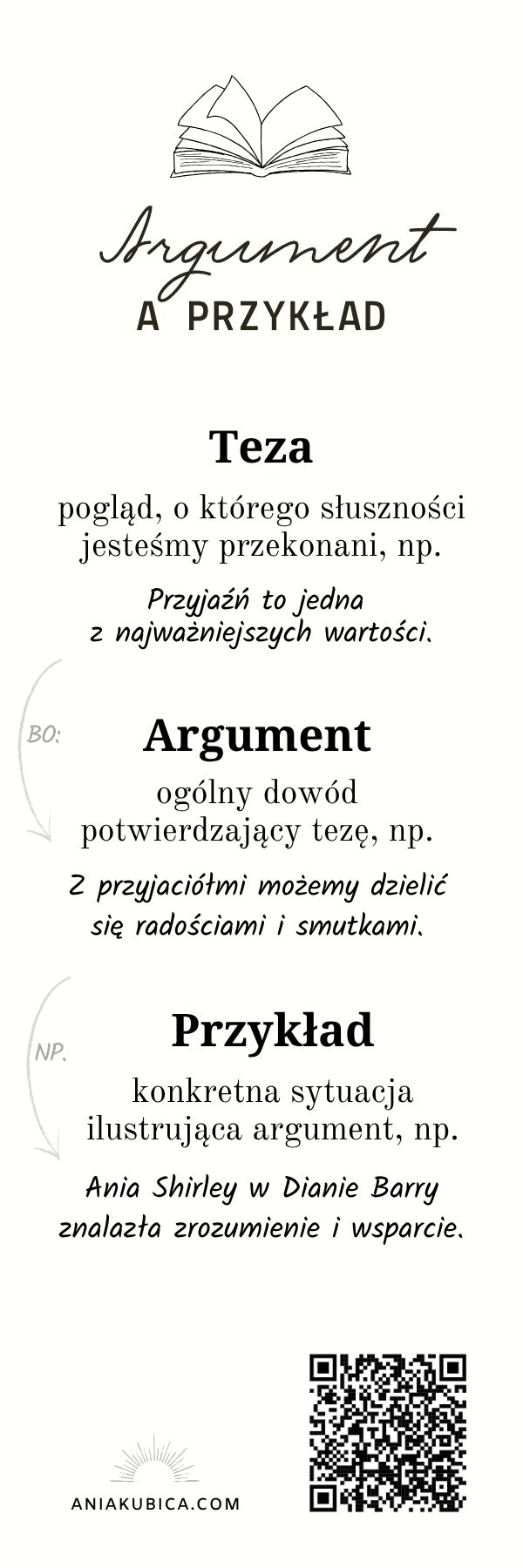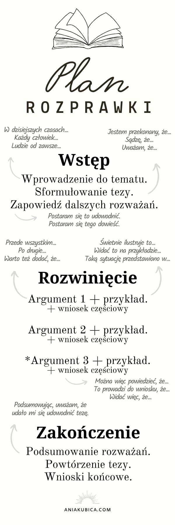 w rozprawce – jak napisać wstęp i zakończenie, czym różni się argument od przykładu oraz co należy zamieścić w poszczególnych częściach wypracowania,