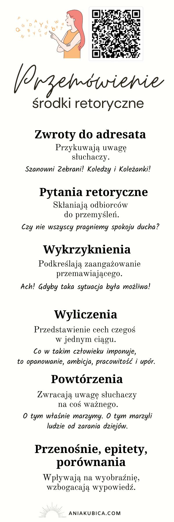 Drodzy Uczniowie! Egzamin coraz bliżej. Przypominam Wam, że na mojej stronie są dostępne zakładki, które dla Was przygotowałam. Są to najważniejsze informacje o tym, jakie elementy twórcze powinno zawierać opowiadanie, jakie elementy retoryczne powinny znaleźć się w przemówieniu, a także schemat pisania rozprawki. Zachęcam Was, żebyście je sobie wydrukowali i mieli przy sobie podczas nauki. Pamiętajcie! Ostatnie zadanie egzaminacyjne to aż 20 punktów! 🙂
