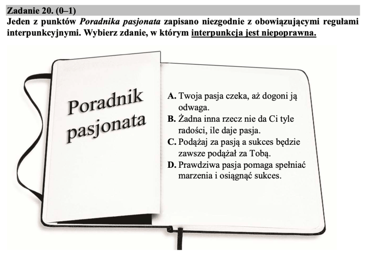 Jeden z punktów „Poradnika pasjonata” zapisano niezgodnie z obowiązującymi regułami interpunkcyjnymi. Wybierz zdanie, w którym interpunkcja jest niepoprawna.