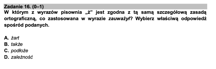 Którym z wyrazów pisownia „ż” jest zgodna z tą samą szczegółową zasadą ortograficzną, co zastosowana w wyrazie „zauważył”?