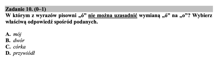 W którym z wyrazów „ó” okazuje się niewymienne?