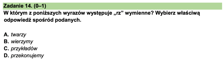 W którym z poniższych wyrazów występuje „rz” wymienne?