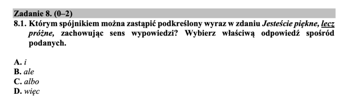 Którym spójnikiem można zastąpić podkreślony wyraz „lecz” w zdaniu: „Jesteście piękne, lecz próżne”, zachowując sens wypowiedzi?