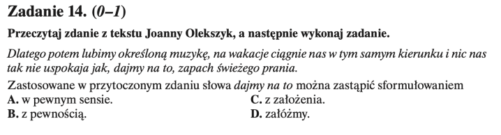 Przeczytaj zdanie: „Dlatego potem lubimy określoną muzykę, na wakacje ciągnie nas w tym samym kierunku i nic nas tak nie uspokaja jak, dajmy na to, zapach świeżego prania”.