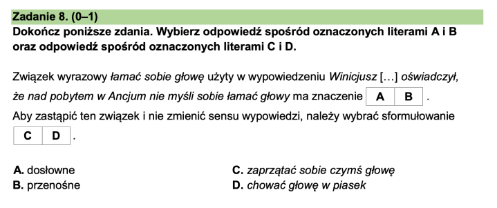 Związek wyrazowy „łamać sobie głowę” użyty w wypowiedzeniu: „Winicjusz oświadczył, że nad pobytem w Ancjum nie myśli sobie łamać głowy” ma znaczenie