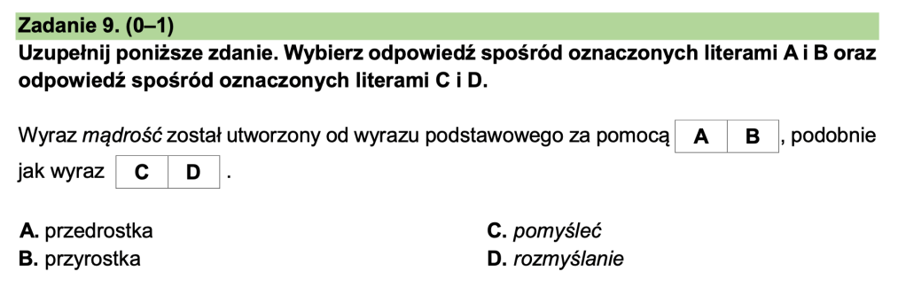 Wyrazy „mądrość” i „rozmyślanie” zostały utworzone za pomocą przyrostków.