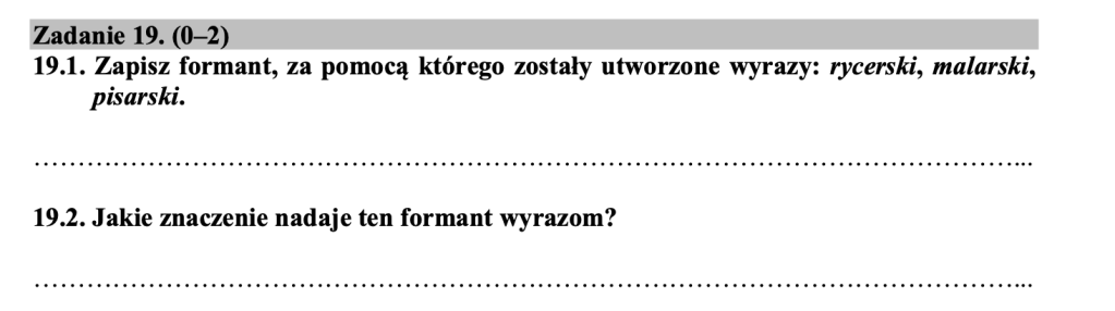 Formant, za pomocą którego zostały utworzone wyrazy: „rycerski”, „malarski”, „pisarski” to