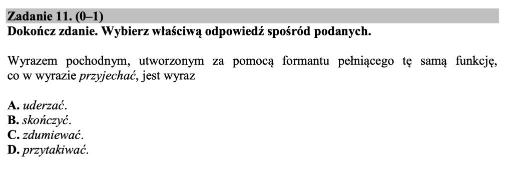 Wyrazem pochodnym, utworzonym za pomocą formantu pełniącego tę samą funkcję, co w wyrazie „przyjechać”, jest wyraz
