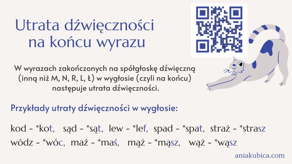 - utrata dźwięczności na końcu wyrazu.